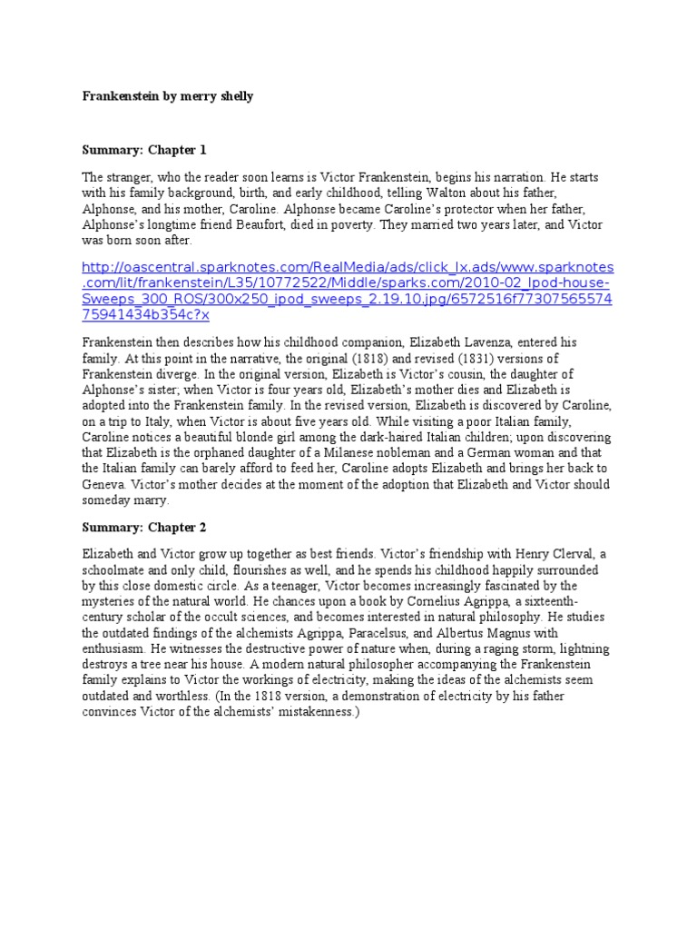 Sparknotes Summary Of Frankenstein By Mary Shelley Pdf Frankenstein